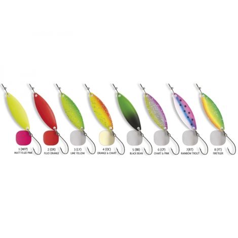 Serie di spoon rapture dedicati al trout area e ultra light spinning alla trota e salmerini. La forma allungata del Rapture rise permette a questo spoon di raggiungere distanze importanti, di penetrare ottimamente in acqua e di essere adatto anche alle correnti dei fiumi. Usato con recupero continuo sviluppa buone oscillazioni laterali efficaci per insidiare le trote a mezz' acqua, micidiale per i salmonidi. Viene proposto armato di amo singolo con ardiglione e punta 3d cut particolarmente affilata e penetrante.