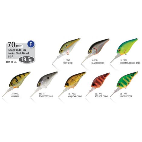 Crank di medie dimensioni che, grazie al proprio profilo corpulento, è in grado di muovere un’importante quantità d’acqua durante il recupero, amplificando le vibrazioni e richiamando i predatori anche da lunghe distanze. Il palettone è responsabile del forte wobbling che caratterizza il suo nuoto, nonché di una rapida discesa fino alla quota massima di 3 metri.