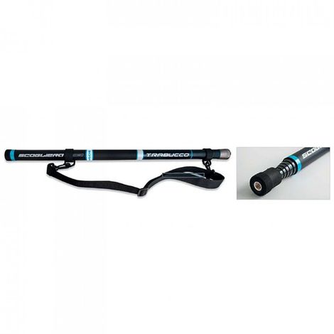 Un palo veramente speciale,dedicato a chi ama la pesca in mobilità,come street fishing e rock fisching,ma anche per chi si incammina sulle difese portuali o sulle scogliere naturali;infine per chi viaggia e necessita di ingombri molto contenuti. Dotato di tracolla regolabile,fissata all'impugnatura per mezzo di bande in Velcro e pertanto asportabile,ha una lunghezza che consente di andare ovunque in tranquillità. La struttura telescopica è in carbonio ad Alta Resistenza;il tappo superiore è prodotto in Eva per offrire una tenuta ottimale,ma anche per poterlo sbollare con una sola mano. Esso incorpora la boccola filettata,così è possibile spostarsi tenendo la testa del guadino avvitata,pronta all'uso. Con un rapido gesto del braccio che lo impugna,il palo si estende fino a portare in acqua la testa, e l'azione di guadinamento può avvenire senza che le sezioni siano estese completamente. La scelta fra le teste guadino Trabucco è vastissima,ma si consiglia di optare per un modello dotato di bracco galleggianti.