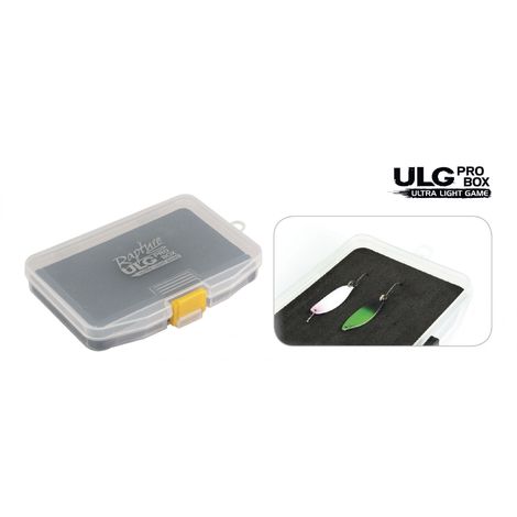 La Scatola ULG Pro Box di Rapture è pratica e leggera. La ULG Pro Box è realizzata in materiale anti-urto ed è adatta a contenere artificiali di piccole dimensioni. La Pro Box ha il coperchio trasparente per consentire una facile identificazione del contenuto.