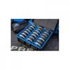 Il sistema di stoccaggio per terminali “Revalution” è basato sull’uso di bobine in EVA dotate di un rivoluzionario sistema di fermo costituito da un pin rotante in plastica. Sulla parte esterna della bobina si trova una zona dedicata all’identificazione del rig, dove poter indicare la lunghezza del rig, il diametro del monofilo, le dimensioni e il tipo di amo. Ogni box è fornito di 21 bobine contenute in una scatola di trasporto con coperchio semi-trasparente studiato per eliminare la luce diretta all’interno del contenitore. All’interno del coperchio è possibile aggiungere degli adesivi per una rapida identificazione del contenuto.